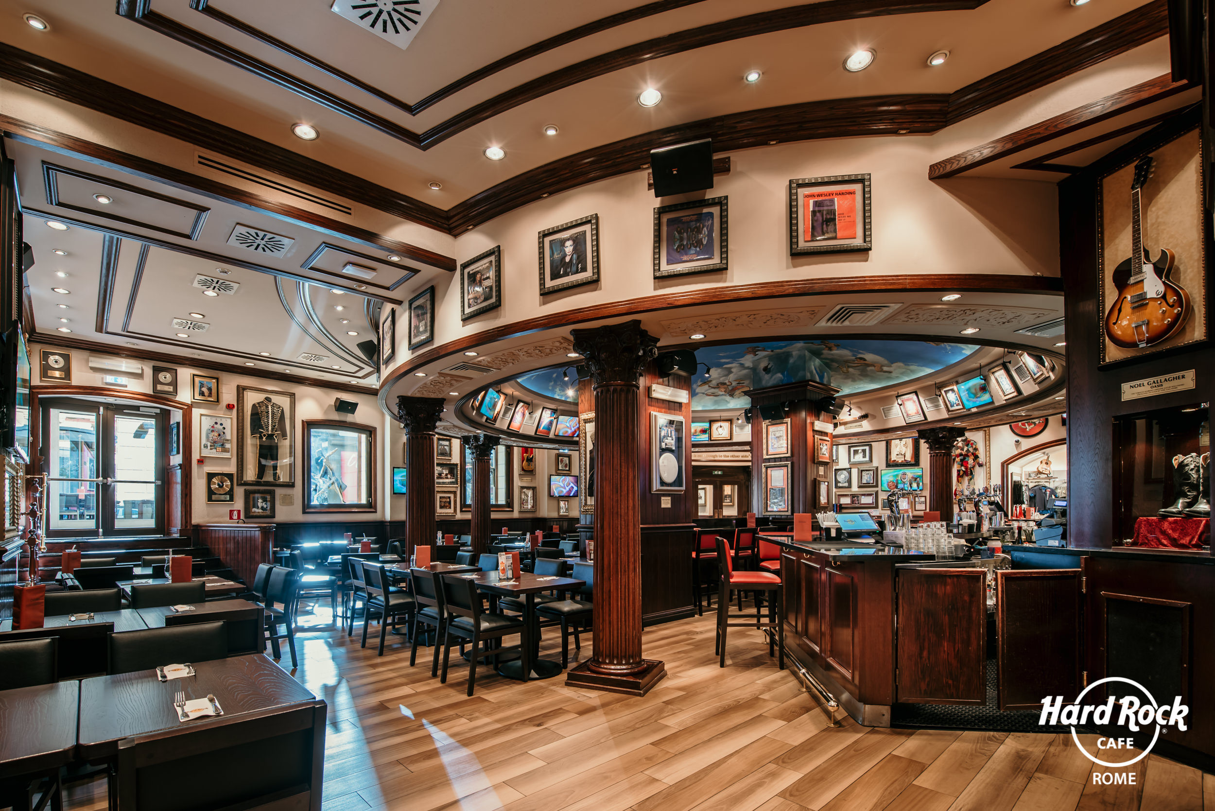 La location è, infatti, un vero e proprio gioiello: incorniciato da soffitti finemente dipinti e colonne in stile corinzio dove sono presenti memorabilia musicali originali che sono stati di proprietà delle più famose rockstar. Insomma, un vero e proprio museo del Rock a pochi passi dalla Fontana di Trevi!